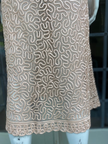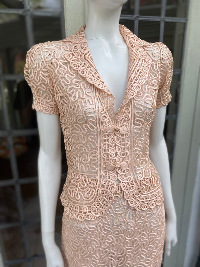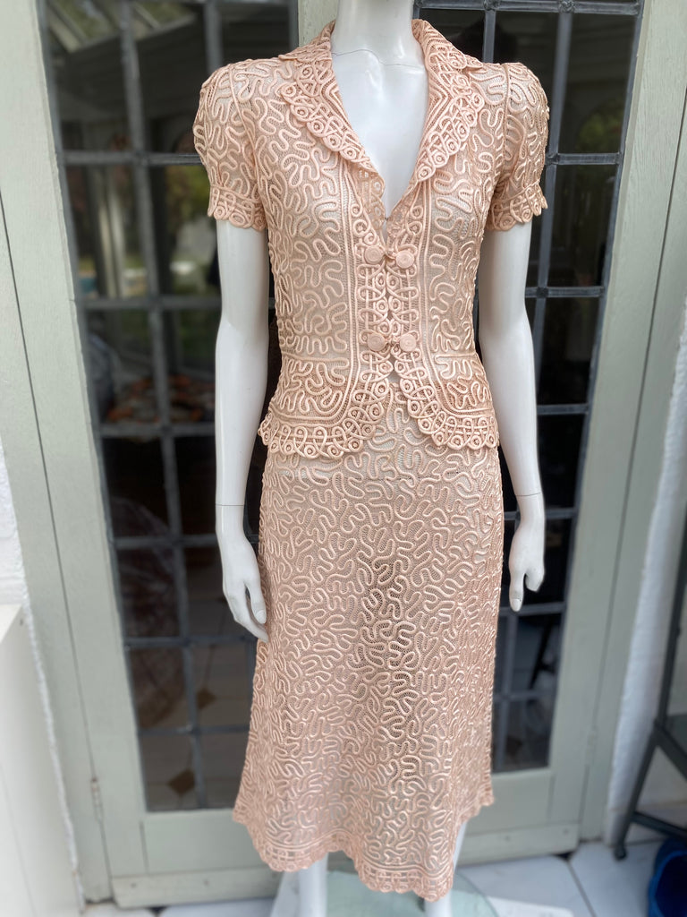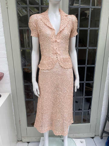 1930s Peach Blush or Nude Color suit made of Silk and Satin Ribbon.